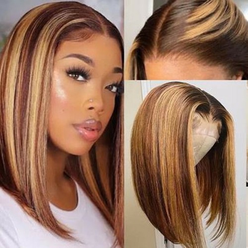 Ombre Color 4 27 Lace Front Wigs Human Hair For Women Highlight Straight Human Hair Short Bob Wigs 4 4 Lace Closure Straight Wigs Pre Plucked Bleached Knots Density 150 10 Inch P4 27 4x4